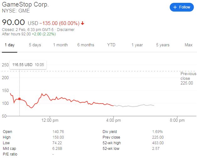 Gamestop Stock Closes At 90 Biggest One Day Decline In Company S History
